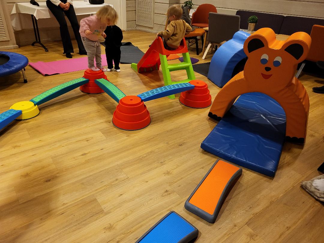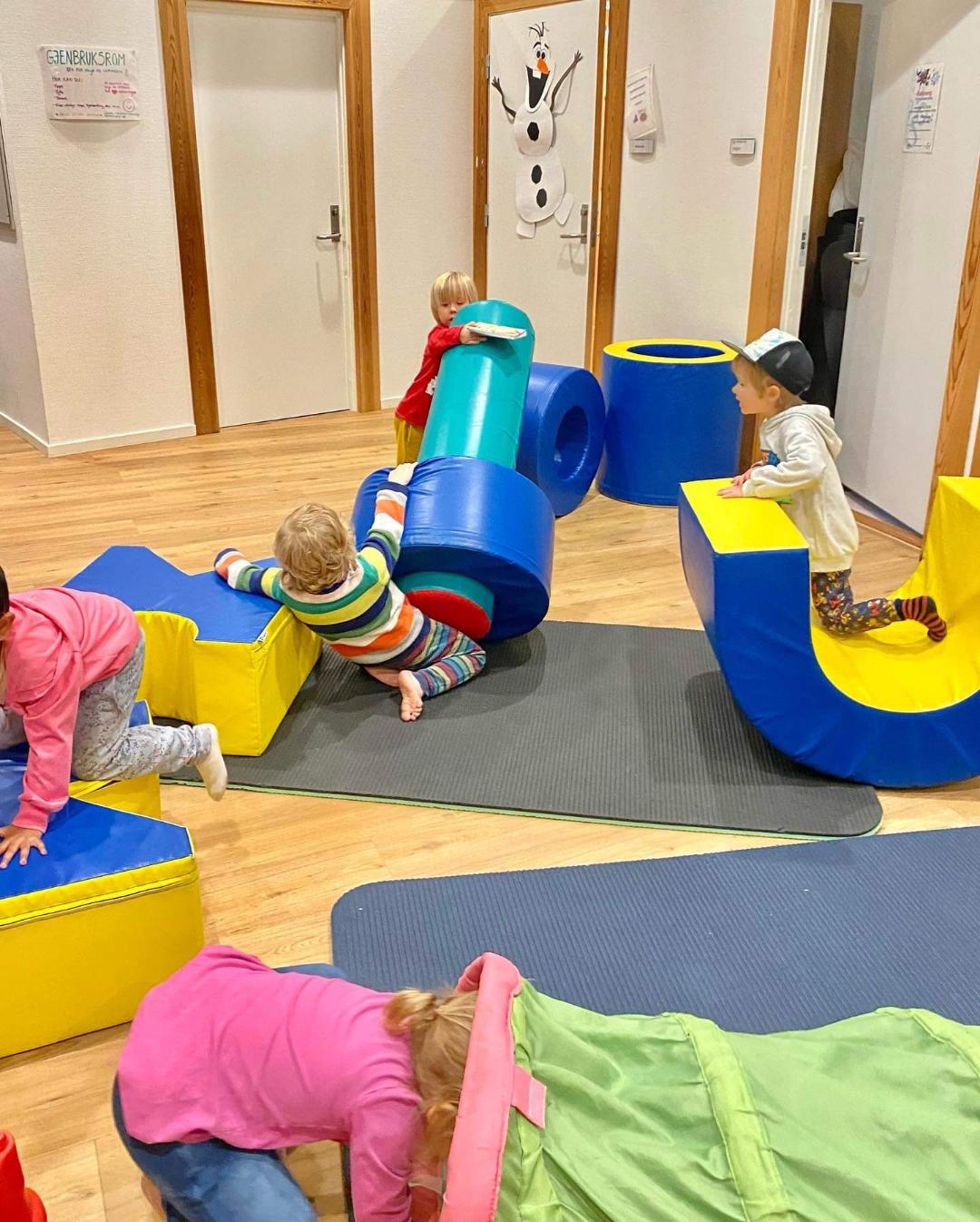 Her er noen av de største barna fra "Bamsegruppen" i aksjon, men også de minste barna liker å leke med putene. Her er det plass til mye latter og lek.