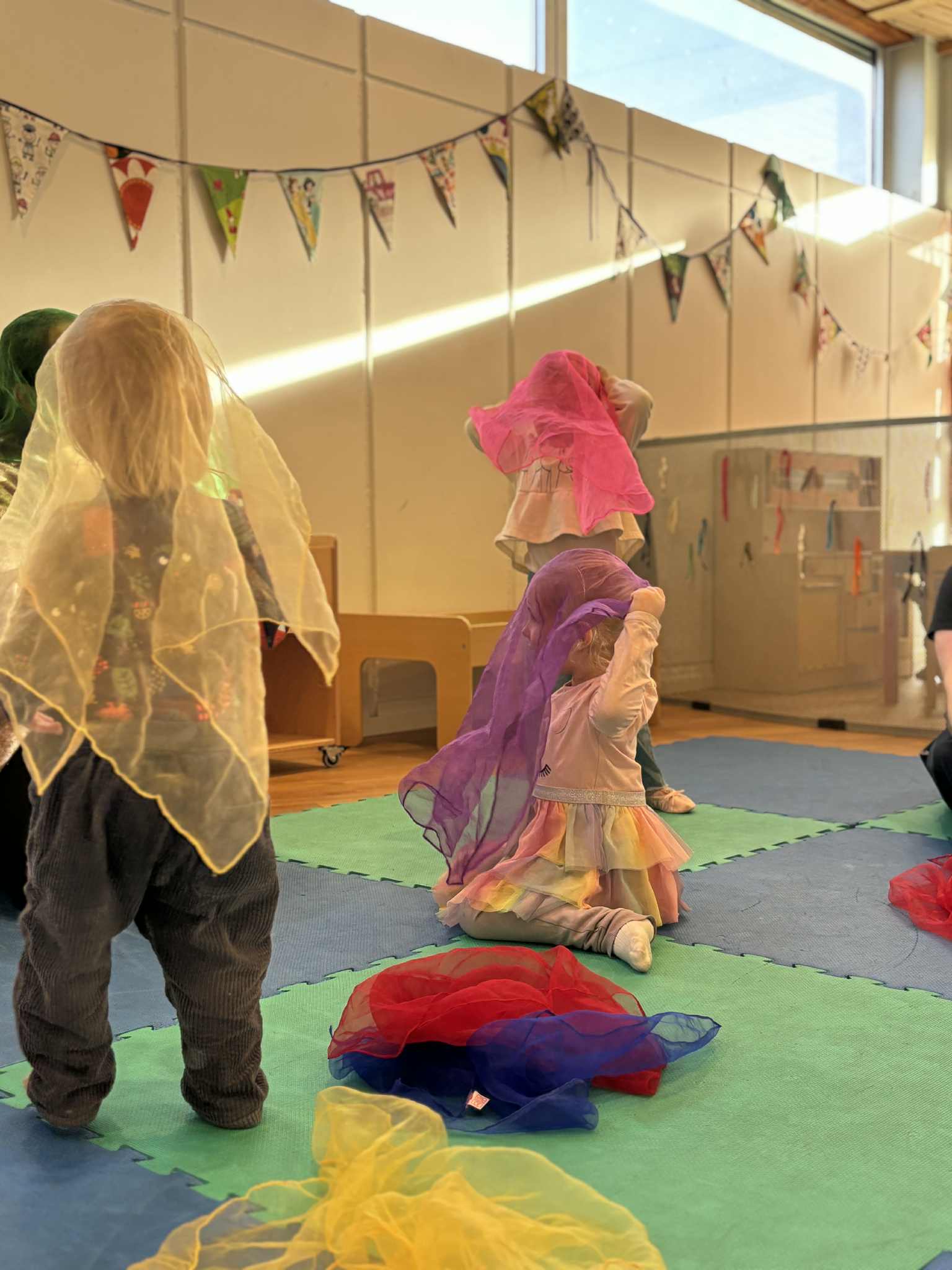 Vi har samlingsstund hver åpningsdag kl. 11. Her synger vi mange kjente barnesanger og bruker effekter som sjal og rasleegg. Samlingsstunden passer for barn fra 0 år og oppover.