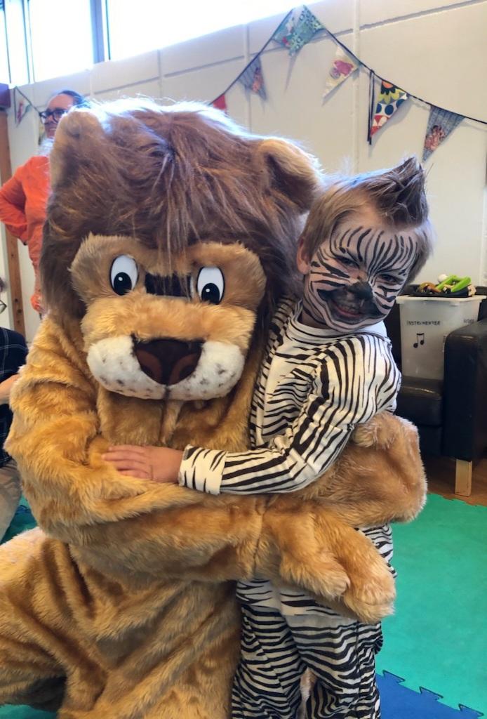Denne uken har vi feiret HalloVenn i barnehagen vår, en litt snillere utgave av Halloween. Vi fikk besøk av en snill løve som ga ut små gaver til barna. Løven var heldig og fikk verdens beste klem av en skjønn liten zebra.