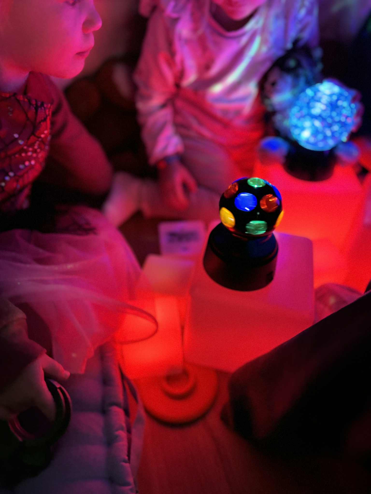 Her får barna utforske et sanserom vi hadde fremme noen dager denne måneden.